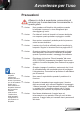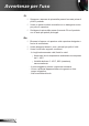 Avvertenze per l’uso Precauzioni Attenersi a tutte le avvertenze, precauzioni ed istruzioni per la manutenzione raccomandate in questa guida. Quando la lampada raggiunge il termine della sua durata, il proiettore non si riaccenderà finché non è stata sostituita la lampada. Attenersi alle procedure illustrate nella sezione “Sostituzione della lampada”, a pagina 46-47, per sostituire la lampada. ▀■ Avviso- Non guardare nell'obiettivo del proiettore quando la lampada è accesa.