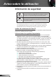 Aviso sobre la utilización Información de seguridad El símbolo de rayo dentro de un triángulo equilátero pretende alertar al usuario de la existencia de “voltaje peligroso” no aislado en el interior del producto, cuya magnitud puede ser lo suficientemente grande como para constituir un riesgo de descarga eléctrica para las personas.