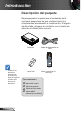Introducción Descripción del paquete Desempaquete e inspeccione el contenido de la caja para asegurarse de que contiene todos los componentes enumerados a continuación. Si alguno de ellos falta, póngase en contacto con el centro de atención al cliente más cercano. Proyector Debido a las diferentes aplicaciones de cada país, algunas regiones pueden tener accesorios diferentes.