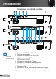 Introducción Información general del producto Unidad principal 1 7 2 6 3 5 4 La interfaz está sujeta a las especificaciones del modelo. No bloquee las entradas/salidas de ventilación del proyector. 9 7 8 2 1. Botón de Encendido e Indicador LED 2. Ventilación (Entrada) 3. Anillo del zoom 4. Anillo de enfoque 5. Lentes del zoom 6. Receptores de infrarrojos (IR) 7. Ventilación (Salida) 8. Conexiones de entrada y salida 9.