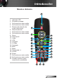 Controles del usuario Mando a distancia Utilizar el mando a distancia Encendido Consulte la sección “Encender y apagar el proyector” en las páginas 12-13. Botón L (izquierdo) Sin función. Botón R (derecho) Sin función. Página + Sin función. Página - Sin función. Entrar Permite confirmar la opción seleccionada. Fuente Presione el botón “Fuente” para seleccionar una señal de entrada. RESINCRONIZACIÓN Permite sincronizar automáticamente el proyector con la fuente de entrada.
