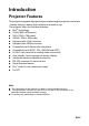 CONTENTS Usage Notice ....................................................................... 2 Safety Instructions .......................................................................................... 2 Introduction ......................................................................... 5 Projector Features .......................................................................................... 5 Package Contents ....................................................................................