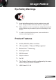 Table of Contents Table of Contents.............................1 Usage Notice....................................2 Safety Information................................2 Precautions..........................................3 Eye Safety Warnings...........................5 Product Features.................................5 Introduction.......................................6 Package Overview...............................6 Product Overview................................7 Main Unit...........................