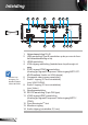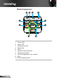 Inleiding Productoverzicht Hoofdeenheid 8 1 9 5 4 De interface kan afwijken door de specificaties van het model. 2 3 8 6 7 Blokkeer niet de in/uit luchtgaten van de projector. 1. 2. 3. 4. 5. edieningspaneel B Scherpstelring Luidsprekerr Zoomlens IR-ontvangers 6. 7. 8. 9.