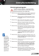 Bijlagen Beeld is niet scherpgesteld Controleer of de lenskap (optioneel) is verwijderd. Pas de scherpstelring op de projectorlens aan. Zorg dat het projectiescherm op de vereiste afstand staat. Zie pagina 19-20. Het beeld wordt uitgerekt wanneer een 16:9 DVD-titel wordt weergegeven Wanneer u anamorfe DVD of 16:9 DVD afspeelt, toont de projec- tor het beste beeld wanneer de weergavemodus van de projector is ingesteld op 16:9 in het OSD.