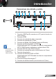Introducción Información general del producto Unidad principal 8 1 9 5 4 La interfaz está sujeta a las especificaciones del modelo. 2 3 8 6 7 No bloquee las entradas/salidas de ventilación del proyector. 1. 2. 3. 4. 5. anel de control P Anillo de enfoque Altavoces Lentes del zoom Receptor IR 6. Conexiones de entrada y salida 7. Toma de alimentación 8. Ventilación (Entrada) 9.