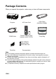 CONTENTS Usage Notice ....................................................................... 2 Safety Instructions .......................................................................................... 2 Introduction ......................................................................... 5 Projector Features .......................................................................................... 5 Package Contents ....................................................................................
