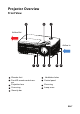 Projector Overview Front View 7 8 9 Airflow Out Airflow In 1 1 2 3 4 5 Elevator foot Front IR remote control sensor Projection lens Focus ring Security bar 2 3 6 7 8 9 4 5 6 Ventilation holes Control panel Zoom ring Lamp cover EN-7