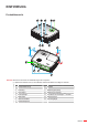 EINFÜHRUNG Bedienfeld 1 2 3 4 11 5 10 6 9 8 No. Eintrag 7 No. Eintrag 1. Betrieb/Bereitschaft-LED 7. Bestätigen 2. Lampen-LED 8. Menü 3. Trapezkorrektur 9. Vier Richtungstasten 4. Temperatur-LED 10. Quelle 5. Information 11. Ein-/Austaste 6.