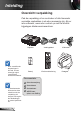 Bedieningselementen gebruiker Afstandsbediening De afstandsbediening gebruiken Power Voeding Raadpleeg sectie “De projector in/uitschakelen” op pagina’s 13 ~ 14. Schakelaar USB muis schakelaar Display leeg & Audio mute Schakelt de audio en video tijdelijk uit/in. Blokkeren De video tijdelijk blokkeren. Dempen Schakelt de audio tijdelijk uit/in. L/R USB muis Links/Rechts klikken emuleren.