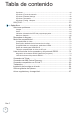 Tabla de contenido Información de seguridad...............................................................................3 Precauciones..................................................................................................4 Advertencias de seguridad para la vista........................................................6 Introducción............................................................................................. 7 Contenido del paquete................................................