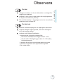 Observera Varningar angående ögonsäkerhet Titta aldrig rakt in i projektorstrålen. Håll ryggen vänd mot strålen så mycket som möjligt. När projektorn används i ett klassrum ska studenter övervakas när de ombeds att peka ut någonting på skärmen. För att minimera lampenergi som behövs ska fönster täckas för för att minska omgivande ljusnivåer. Notera Notera Spara denna manual för kommande referens.