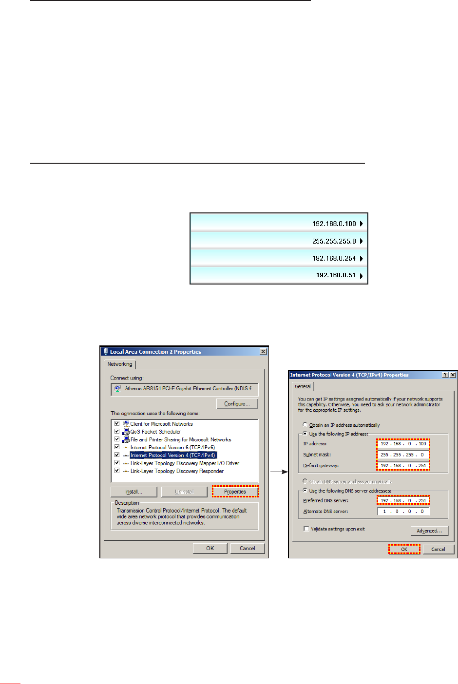 2. Congureer IP-adres, Subnetmasker, Gateway en DNS op de projector ("Netwerk: LAN Settings").