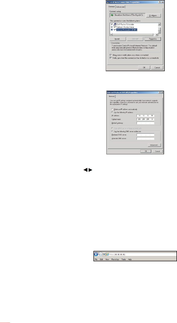 12. Voer in de adresbalk het IP-adres van de projector in: 10.10.10.10.
