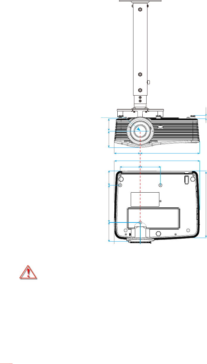 1. Gebruik de plafondmontage van Optoma om schade aan uw projector te voorkomen.