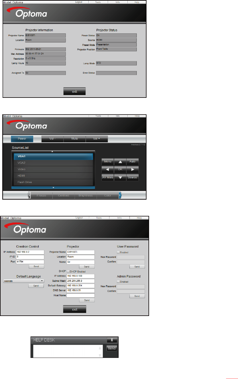 The projector is setup for remote management. The LAN/RJ45 function displays as follows:
