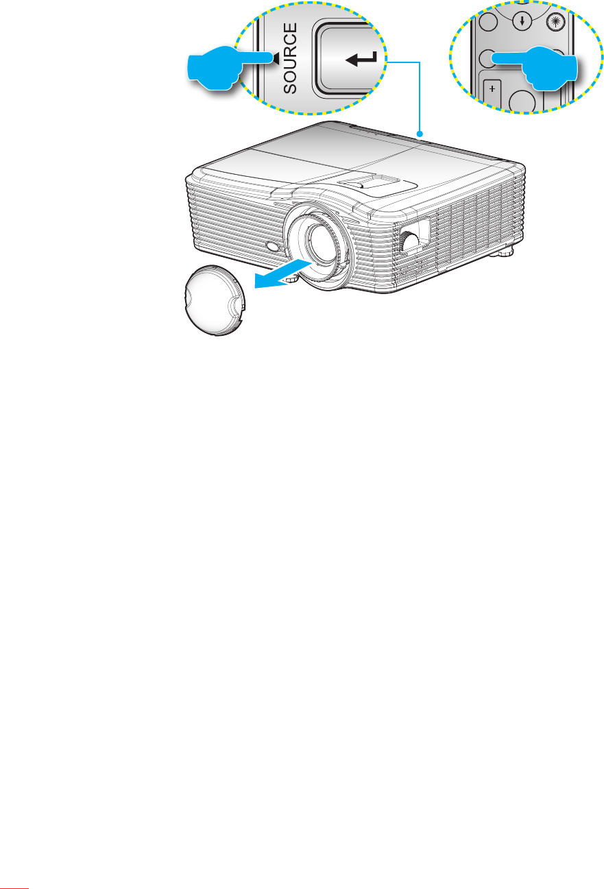 projector zal de bron automatisch detecteren. Als meerdere bronnen zijn aangesloten, drukt u op de bronknop op