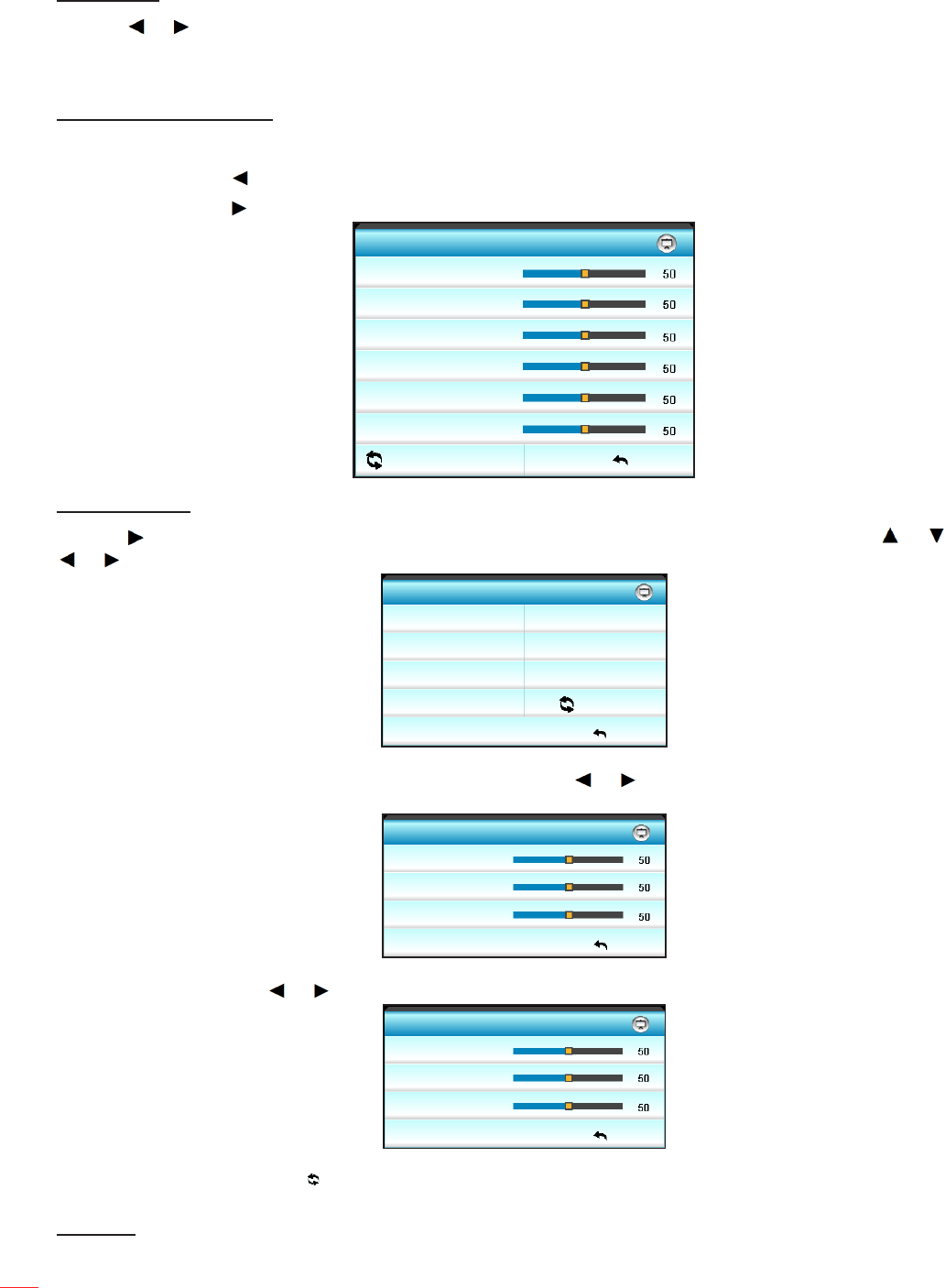 Reset: Selecteer " Reset" om de standaard fabrieksinstellingen voor de kleuraanpassingen opnieuw
