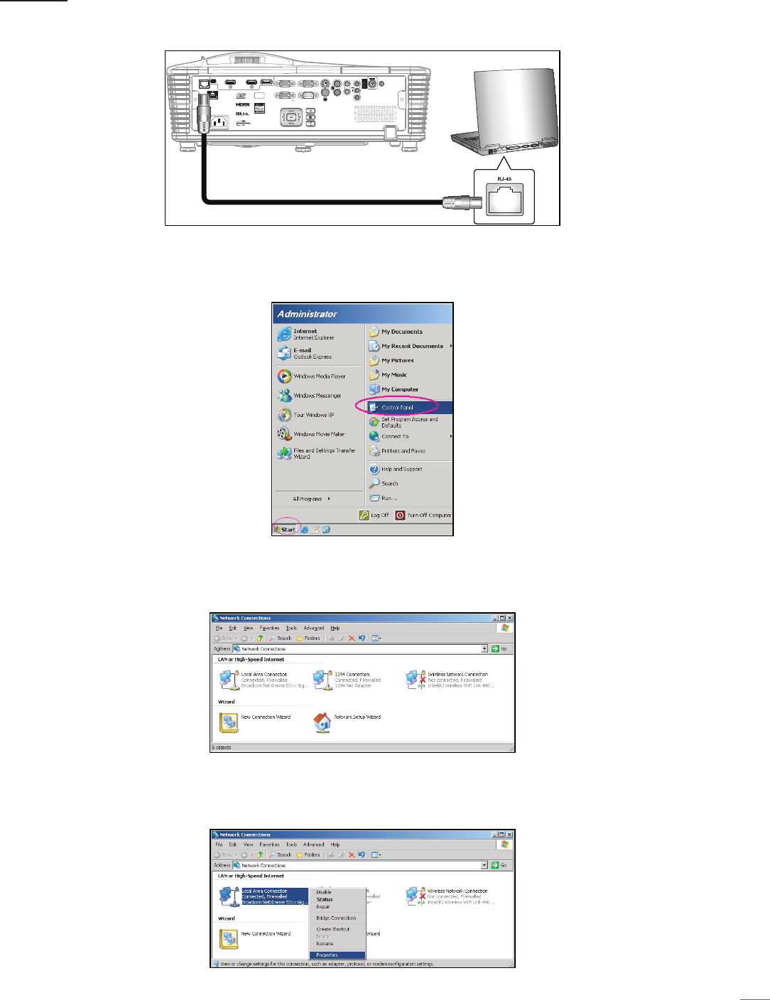 2. Klik op de pc (laptop) op Start -> Control Panel (Conî‚¿guratiescherm) -> Network Connections