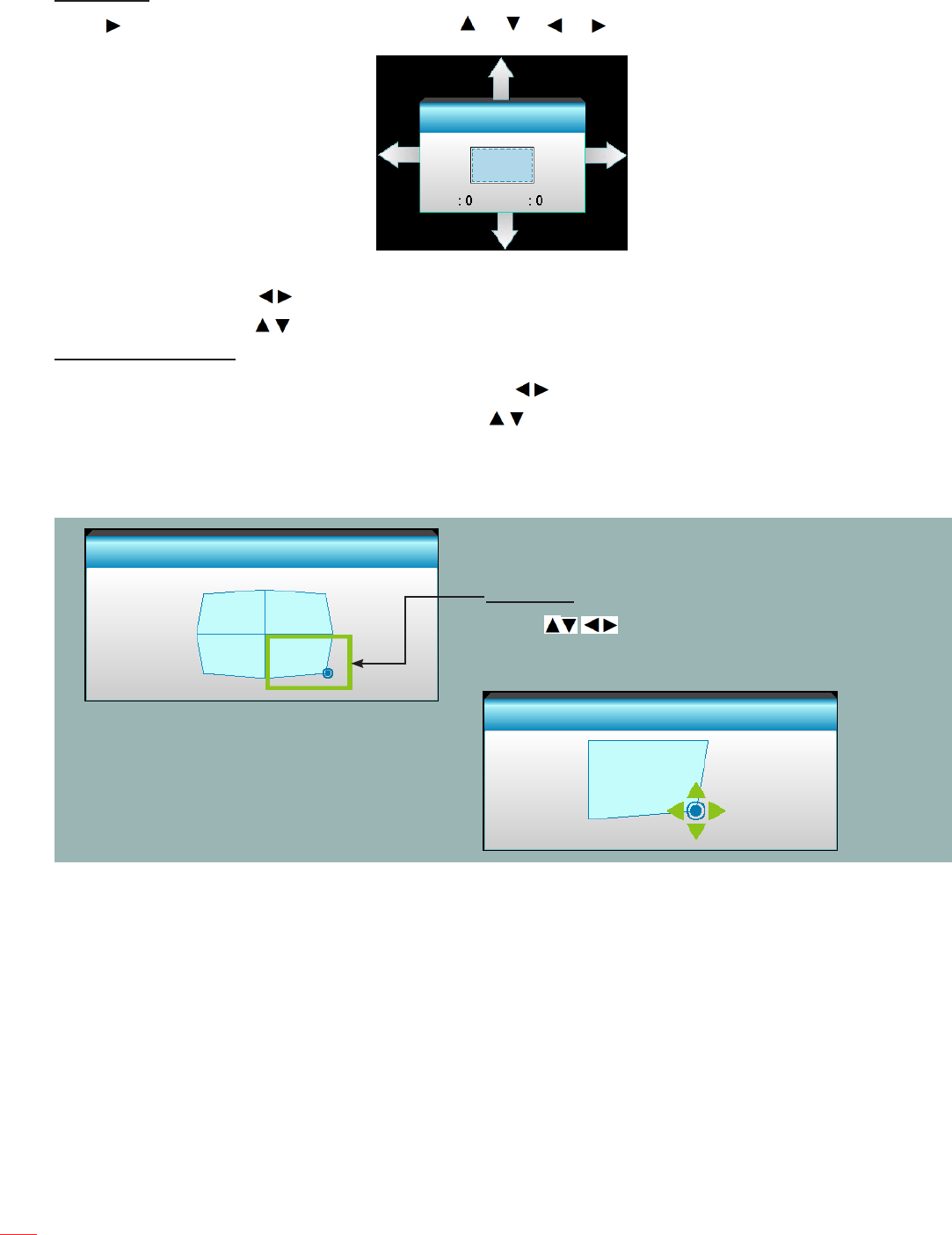 Four corners: Compensate for image distortion by adjusting one corner at a time.