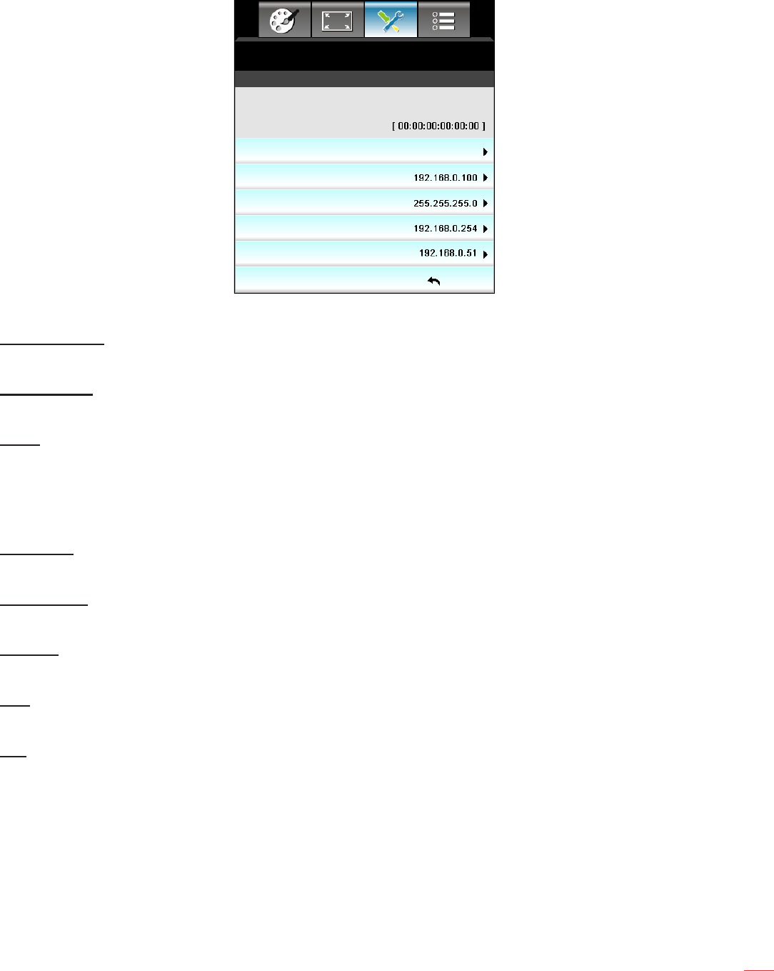 Off: To assign IP, Subnet Mask, Gateway and DNS conguration manually.