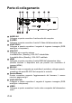 Porte di collegamento 1 2 3 4 5 6 7 8 9 1 2 3 11 10 9 8 4 5 6 7 AUDIO-IN 1 Collegare a questo connettore l’uscita audio del computer. S-VIDEO Collegare a questo connettore l’uscita S-Video dell’attrezzatura video. VGA1/YPbPr Collegare a questo connettore il segnale di ingresso immagine (RGB analogico o component). VGA-OUT Collegare ad un monitor esterno. In modalità Eco. (Standby), VGA-OUT è disabilitato. In modalità Attiva (Standby), VGA-OUT è abilitato.