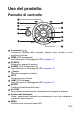 Uso del prodotto Pannello di controllo 1 2 3 4 5 7 8 9 10 6 11 1 1 2 3 4 5 6 7 8 9 10 11 Correzione ( / ) Correzione manuale delle immagini distorte come risultato di una proiezione inclinata. TEMP (LED temperatura) Fare riferimento a "Messaggi dei LED" a pagina 57. SOURCE Cambia tra i segnali di ingresso. POWER (LED di alimentazione) Fare riferimento a "Messaggi dei LED" a pagina 57. Power Accende e spegne il proiettore. HELP Visualizza il menu Guida.