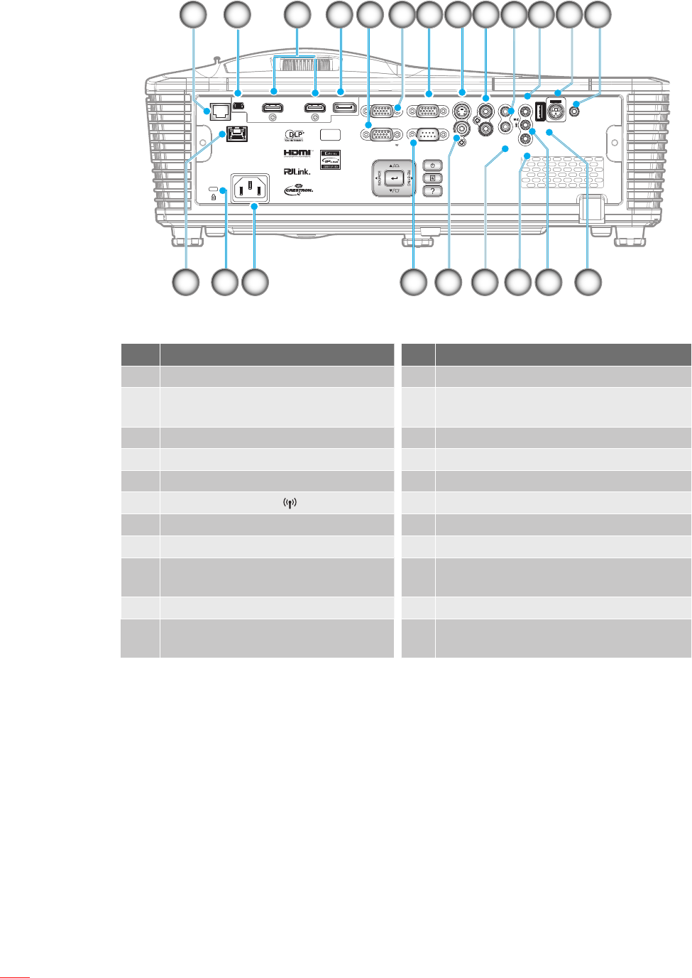 11. Audio-Out connector 22. HDBaseT (optional for W515T/
