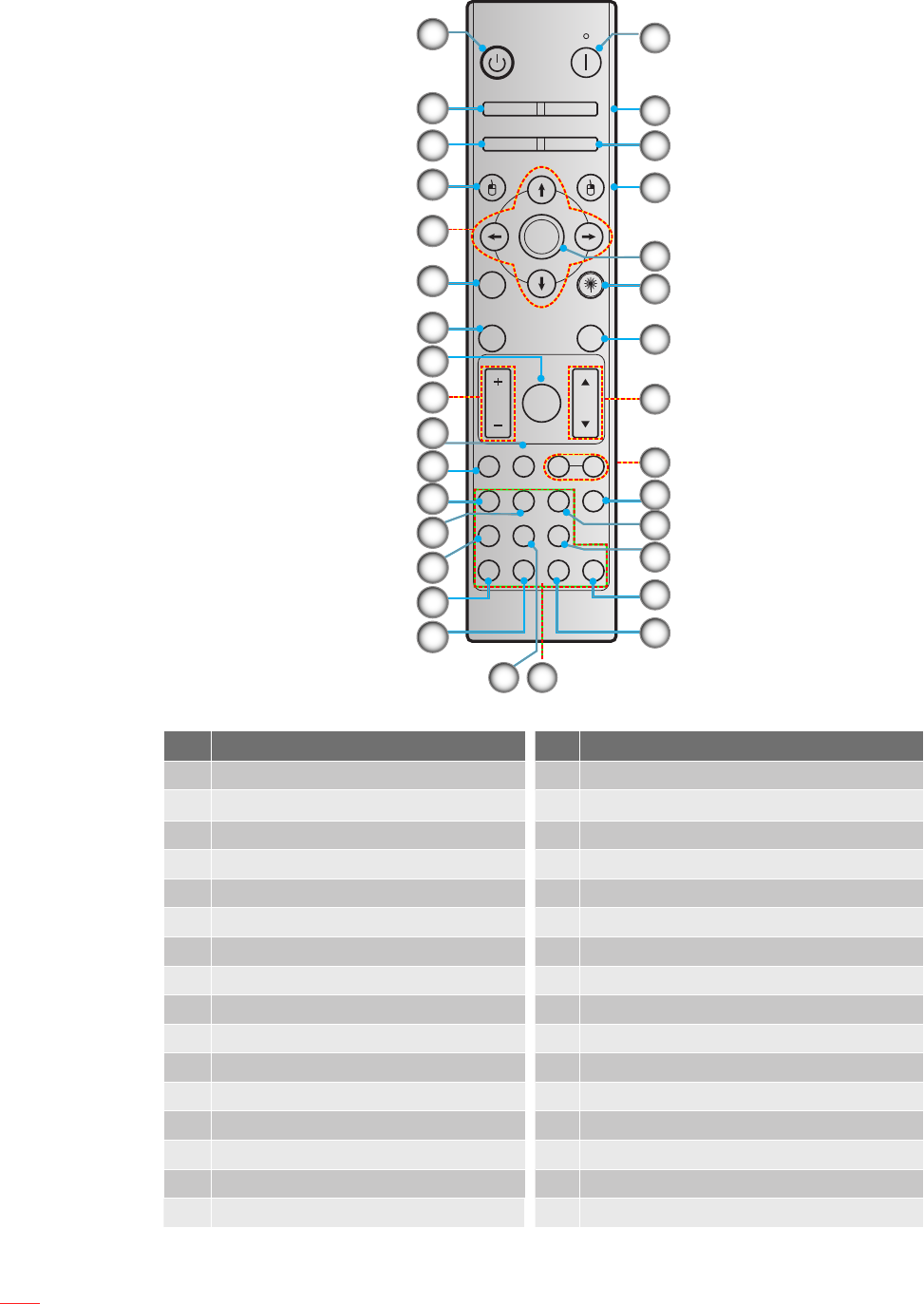 4. Mode/Mouse left click 20. Mouse right click/AV mute