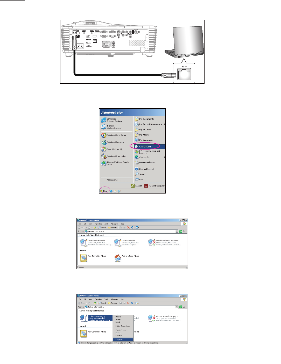 Connect an RJ45 cable to RJ45 ports on the projector and the PC (laptop).1.