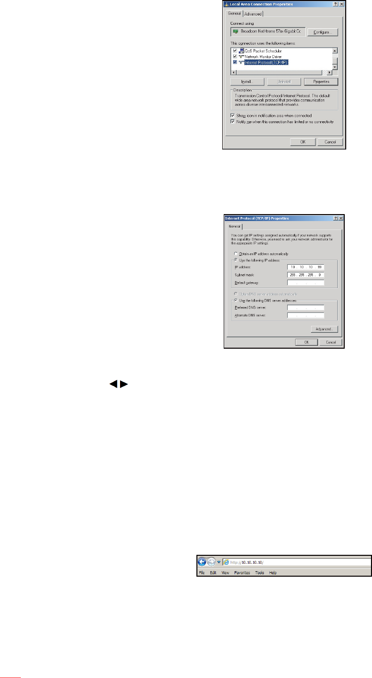 In the Address bar, input the projector's IP address: 10.10.10.10.12.