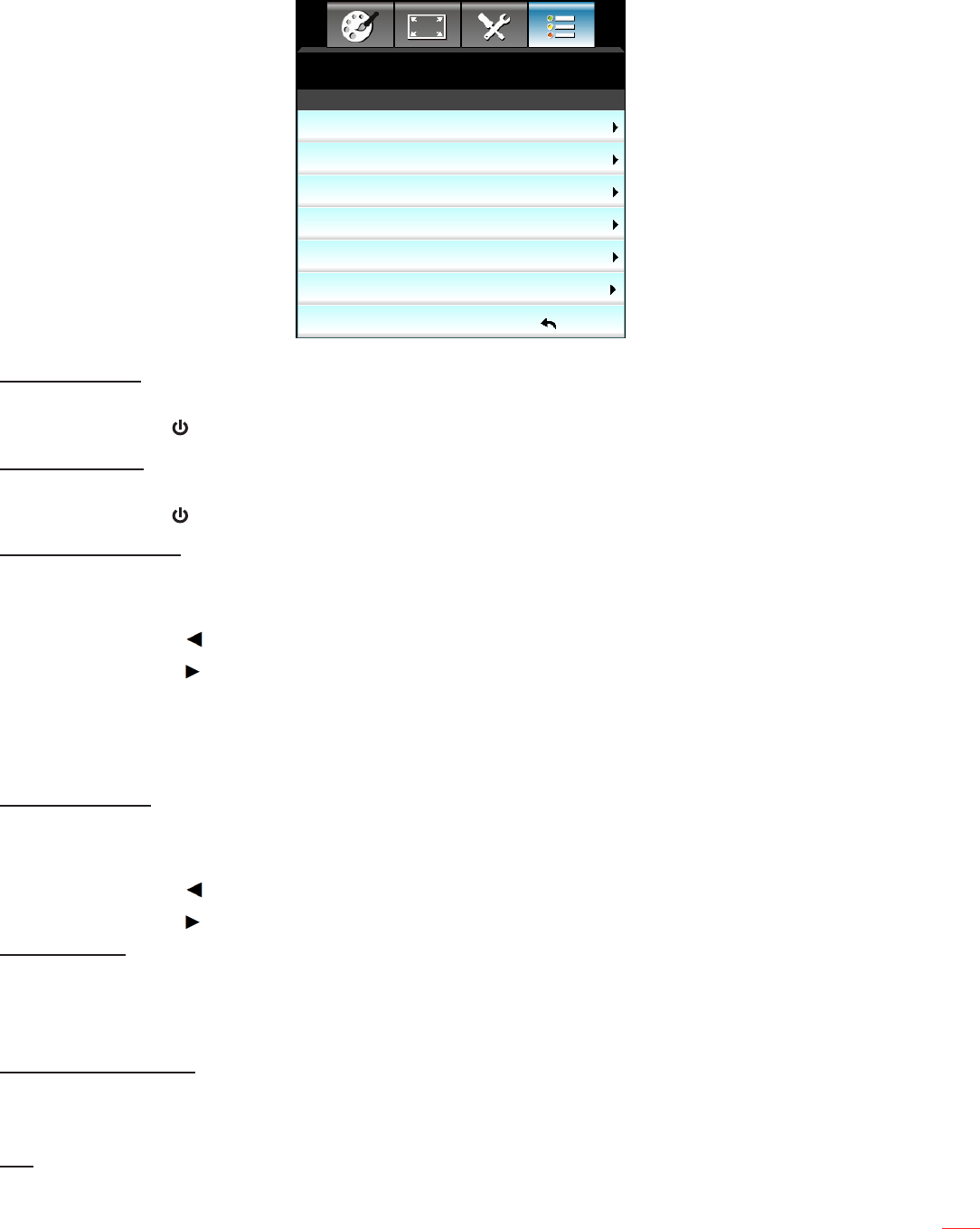 The projector will automatically power off when the countdown has nished. The default setting is 20 minutes.