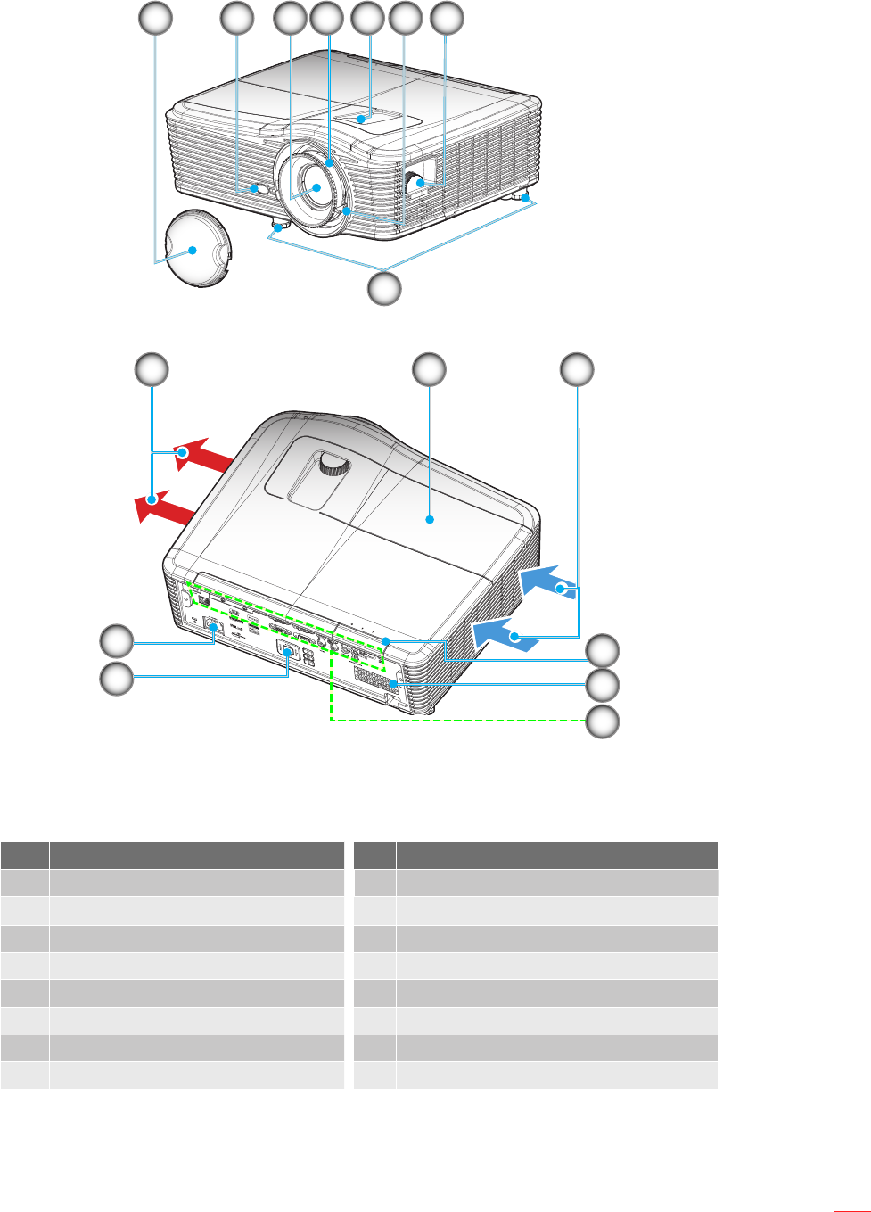 5. Lens Shift (vertical) 13. Input/Output Connections