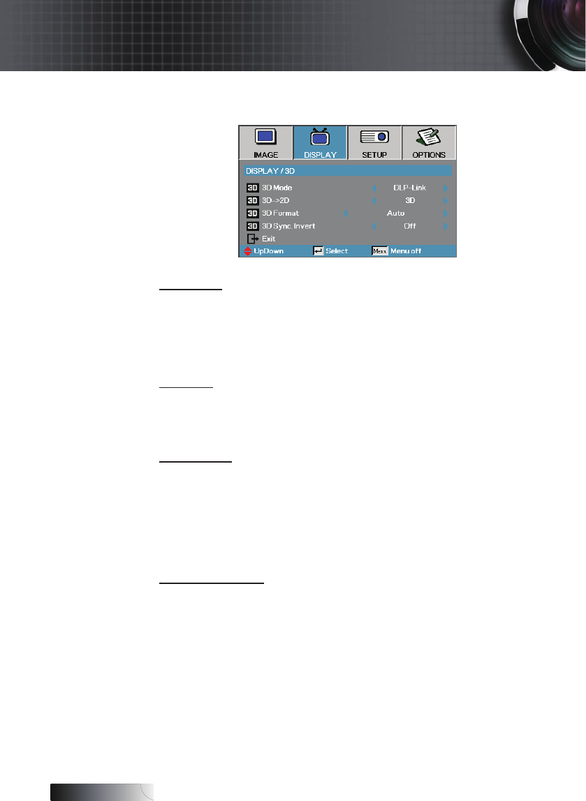 Press ◄ or ► to enable or disable the 3D Sync invert function to invert
