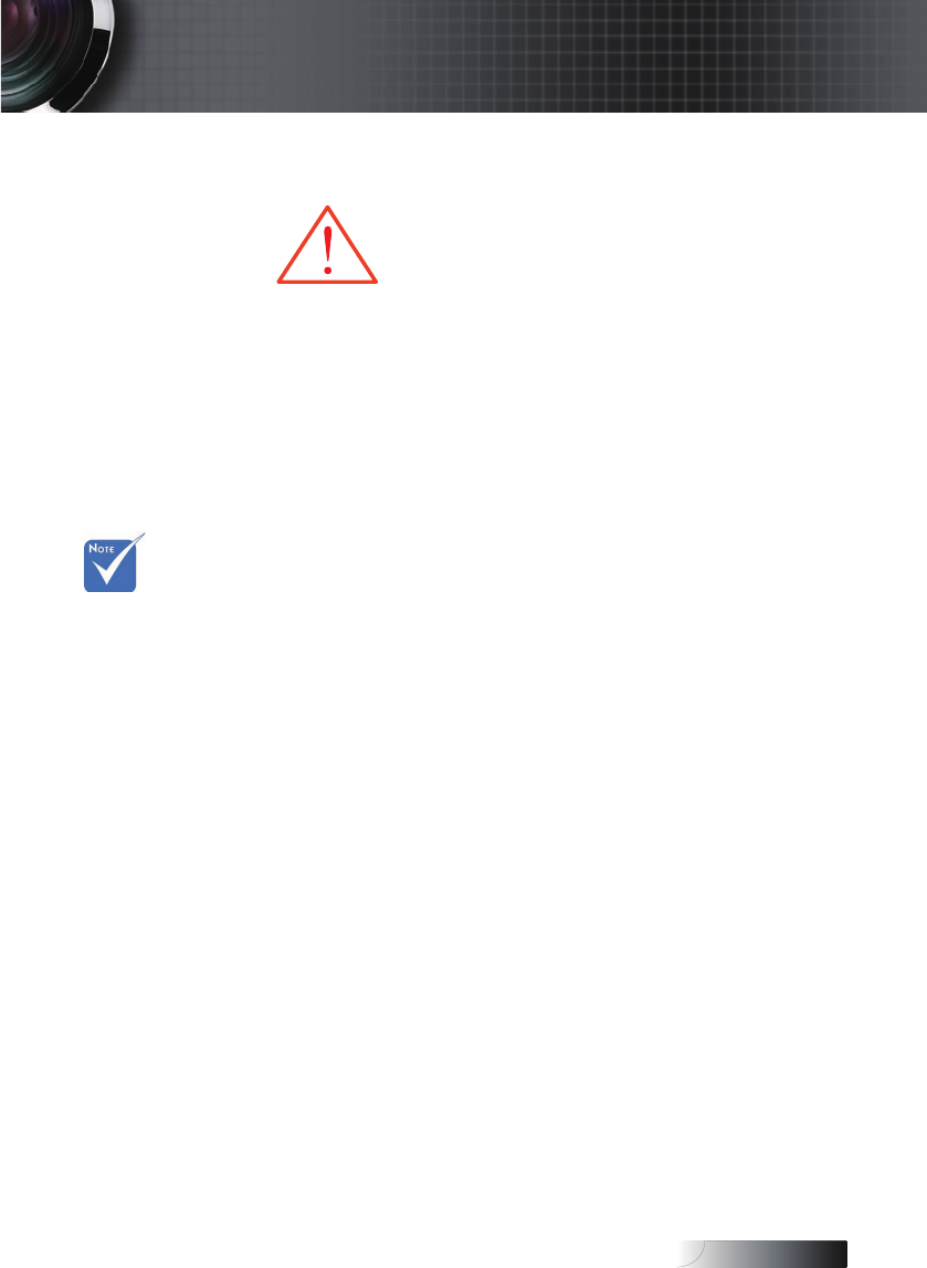 ▀■ Warning - Do not use the lens cap when projector is in operation.
