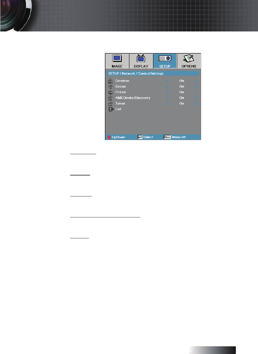 Press ◄► to check to enable/disable AMX Device Discovery.