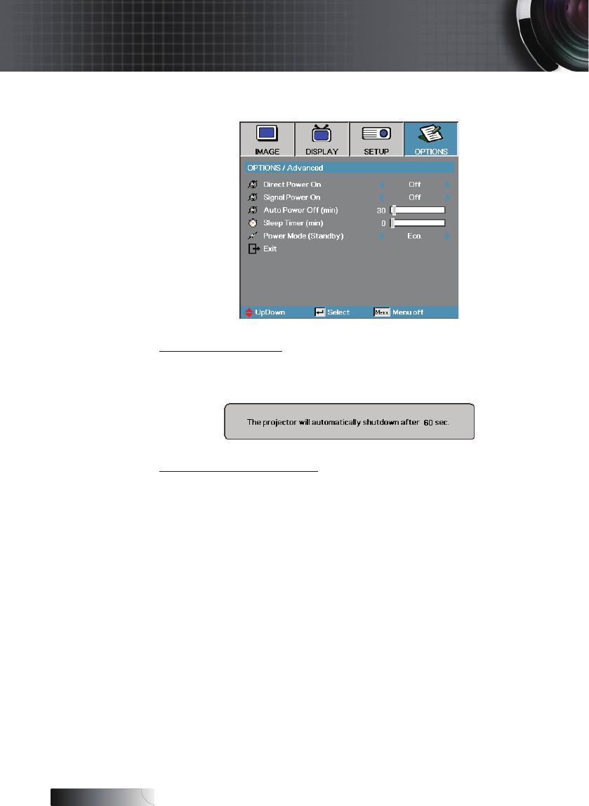 displayed 60 seconds before power off.