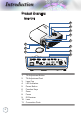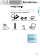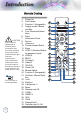 Introduction Package Overview Projector with lens cap Power Cord 1.8m 15 pin D-sub VGA Cable Remote Control 2 x AAA Batteries Carrying Case English Unpack and inspect the box contents to ensure all parts listed below are in the box. If something is missing, please contact Optoma customer service. Note ote Due to different applications in each Country, some regions may have different accessories.