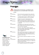 Usage Notice Eye Safety Warnings 6 ▀■ Avoid staring/facing directly into the projector beam at all times. Keep your back to the beam as much as possible. ▀■ When projector is used in a classroom, adequately supervise students when they are asked to point out something on the screen. ▀■ In order to minimize the lamp power, use room blinds to reduce ambient light levels.