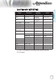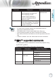 The table below shows commands to control the projector using