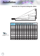Bildschirmgröße B x H (16:9) Projektionsentfernung (D)