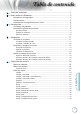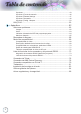 Tabla de contenido Opciones............................................................................................................... 43 Opciones | Fuente de entrada.............................................................................. 46 Opciones | Remote Settings................................................................................. 47 Opciones | Avanzada............................................................................................ 48 Opciones | Config. Lámpara........