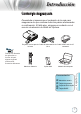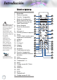 Introducción Contenido del paquete Desembale e inspeccione el contenido de la caja para asegurarse de que contiene todas las piezas enumeradas a continuación. Si falta algo, póngase en contacto con el servicio de atención al cliente de Optoma. Proyector con la tapa de Cable de alimentación de Cable VGA D-sub de 15 la lente 1,8 m contactos Note ote Debido a la diferencia de aplicación en función del país, algunas regiones pueden tener accesorios diferentes.