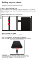Setting up your phone Setting up your phone Your phone already has a SIM card installed. Step 1. Insert microSD card If you have a micro SD card. Use the pin tool and insert it in the hole to release the tray. Insert micro SD card with the gold contacts facing down. Close the tray. NOTE: The micro SD card is sold separately. Step 2. Charge the phone Before turning on your phone, charge it fully. Insert the small end of the USB cable into the phone.
