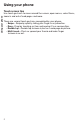 Using your phone Using your phone Touch screen tips Use touch gestures to move around the screen, open menus, select items, zoom in and out of web pages and more. There are several touch gestures recognized by your phone: • Swipe—Swipe by quickly sliding your finger in any direction. • Drag—Drag by touching an item and moving it to a new position. • Double tap—Double tap to zoom in/out on a web page or picture. • Multi-touch—Pinch or spread your thumb and index finger to zoom in or out.