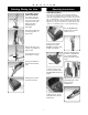 E N G L I S H ADVANCED HEPA FILTER INSTALLATION: T O U T S I M P L E M E N T É T O N N A N T MC GUIDE D’UTILISATION F Remove exhaust grill. R A N Ç A I S Install Advanced Hepa Filter by aligning tabs in slots and pressing top to snap closed. Note: Replace Hepa Filter once a year or every fifth dust bag replacement. Storage Turn unit off and unplug cord from outlet. Rewind cord by pressing cord rewind pedal. Do not allow plug to whip when rewinding.