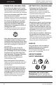 SAFETY RULES • Store at a temperature between -4°F to 86°F (-20°C and 30°C). STORING THE CHARGER • Remove battery pack from the charger. • Disconnect charger from power source. • Store in a dry place. • Keep out of reach of children or pets. See “Maintenance and Cleaning” for more information. TRANSPORTING THE HEDGE TRIMMER Prepare the hedge trimmer as described in “Storing the hedge trimmer” before shipping. TRANSPORTING THE BATTERY PACK Observe national regulations when shipping lithium ion batteries.