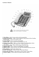 15. Handset Hanger – Use to put handset on hold if wall mounted 16. Volume Switch - Use to adjust the handset receiver volume (NORM or LOUD). 17. Delete Button - Press twice to erase a record. 18. Phone Book – Used to access the 50 Name and number memories 19. Memory [M1], [M2], [M3], [M4] buttons - Press to dial speed dial numbers. 20.