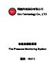 ORO TPMS User Manual To ensure correct operations and services please read these instructions before installing and operating the TPMS Table of Contents 1. Notice…………………………………………………….....……….……………1 2. W410 Tire Pressure Monitoring System……………...………...…..……….2 3. W410 TPMS Specification……………………..…….……………...…………2 5. W410 TPMS Installation…….…………………………………………..………3 Display Unit Installation……………………..…………………………………..3 Tire Sensor Installation………..….…………………………….…………........4 6. W410 System Operation…….………...