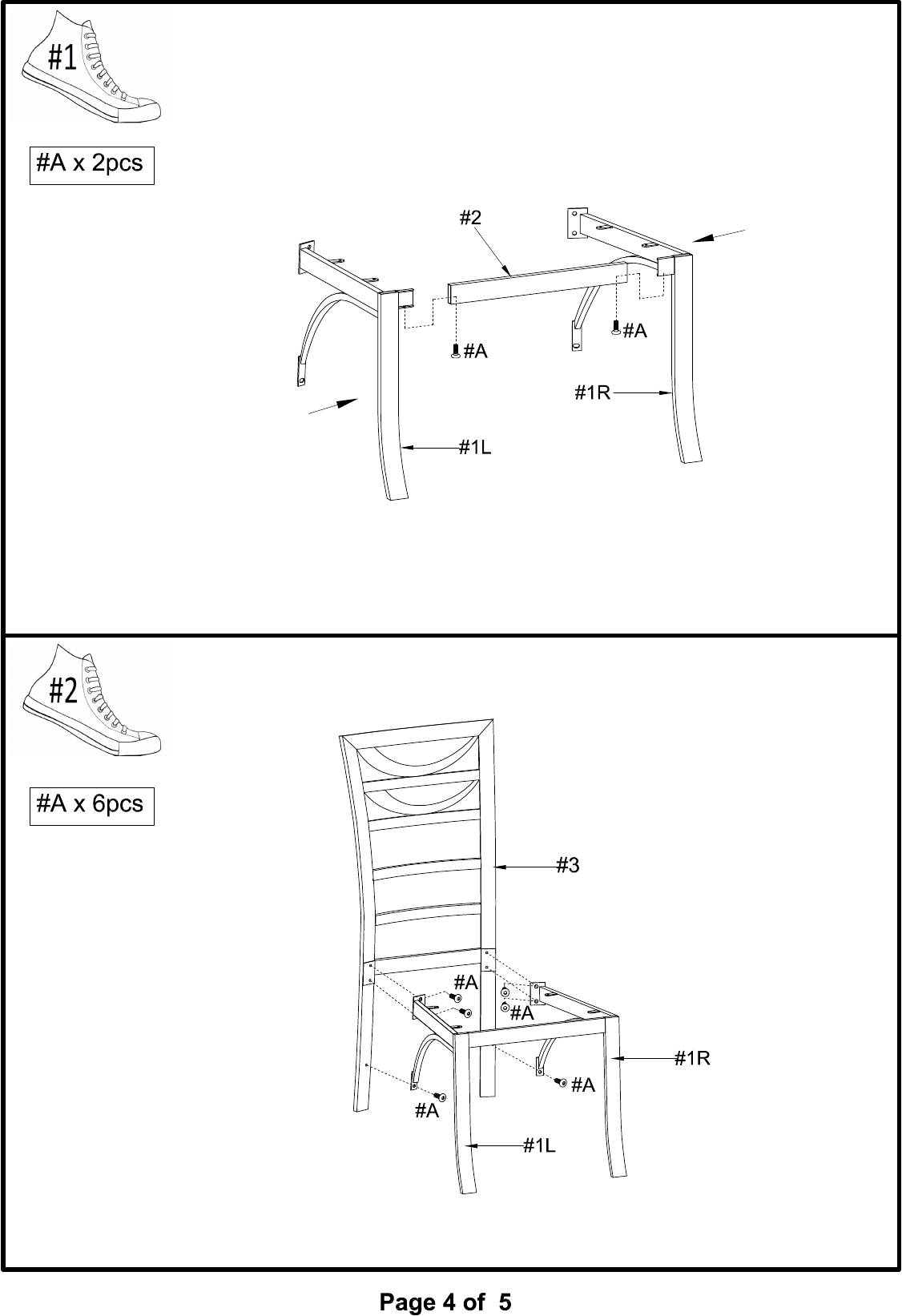 I. Insert the left leg (#1L) and right leg (#1R) onto the rail (#2).